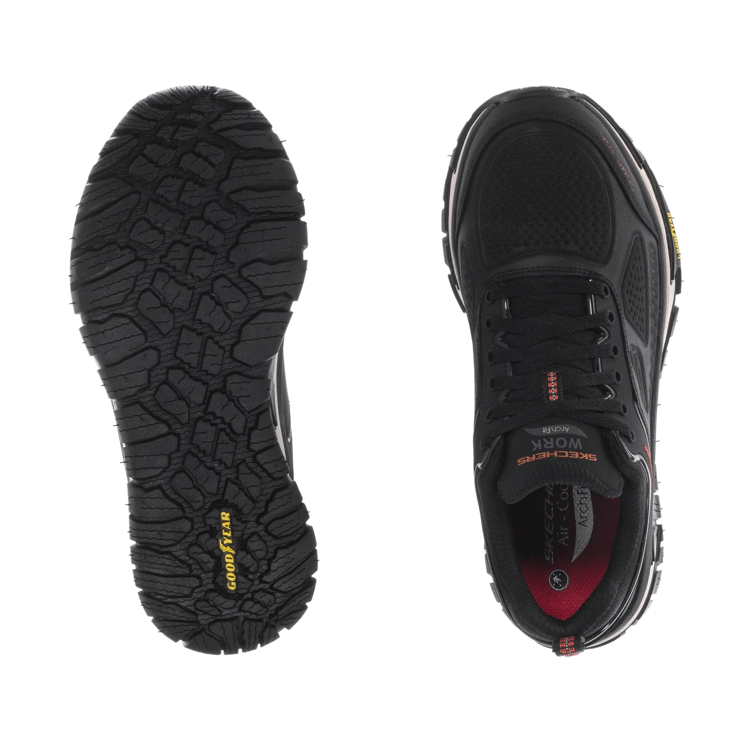 Gear up with all-day support and protection wearing Skechers Workâ„¢: Arch Fit® Road Walker – Raylan. This water-repellent lace-up features a leather, synthetic and mesh upper with a composite safety toe, removable Arch Fit® insole and Goodyear® Performance Outsole.