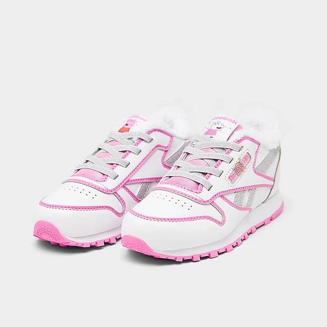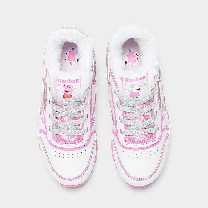 Your little one can bring her favorite Peppa Pig characters with her wherever she goes when she wears the Girls’ Toddler Reebok Peppa Pig Classic Leather Casual Shoes. Peppa and Suzy can be found on the tongues of each shoe, and the fuzzy collar is inspired by Suzy’s wool. Her favorite toy, Owly, even makes an appearance on the side panels.