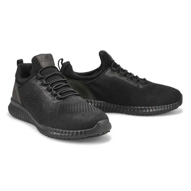 Refined sporty style and all-day protected comfort combine in the Skechers Work Relaxed Fit: Cessnock shoe. This slip-resistant sneaker features a smooth mesh knit upper with a slip-on bungee-laced front and cushioned Memory Foam insole. Water and stain-resistant athletic mesh upper. Relaxed Fit design for a roomy comfortable fit. Slip-resistant traction outsole with oil resistance. Electrical Hazard (EH) – ASTM F2413-2011-approved for safety.