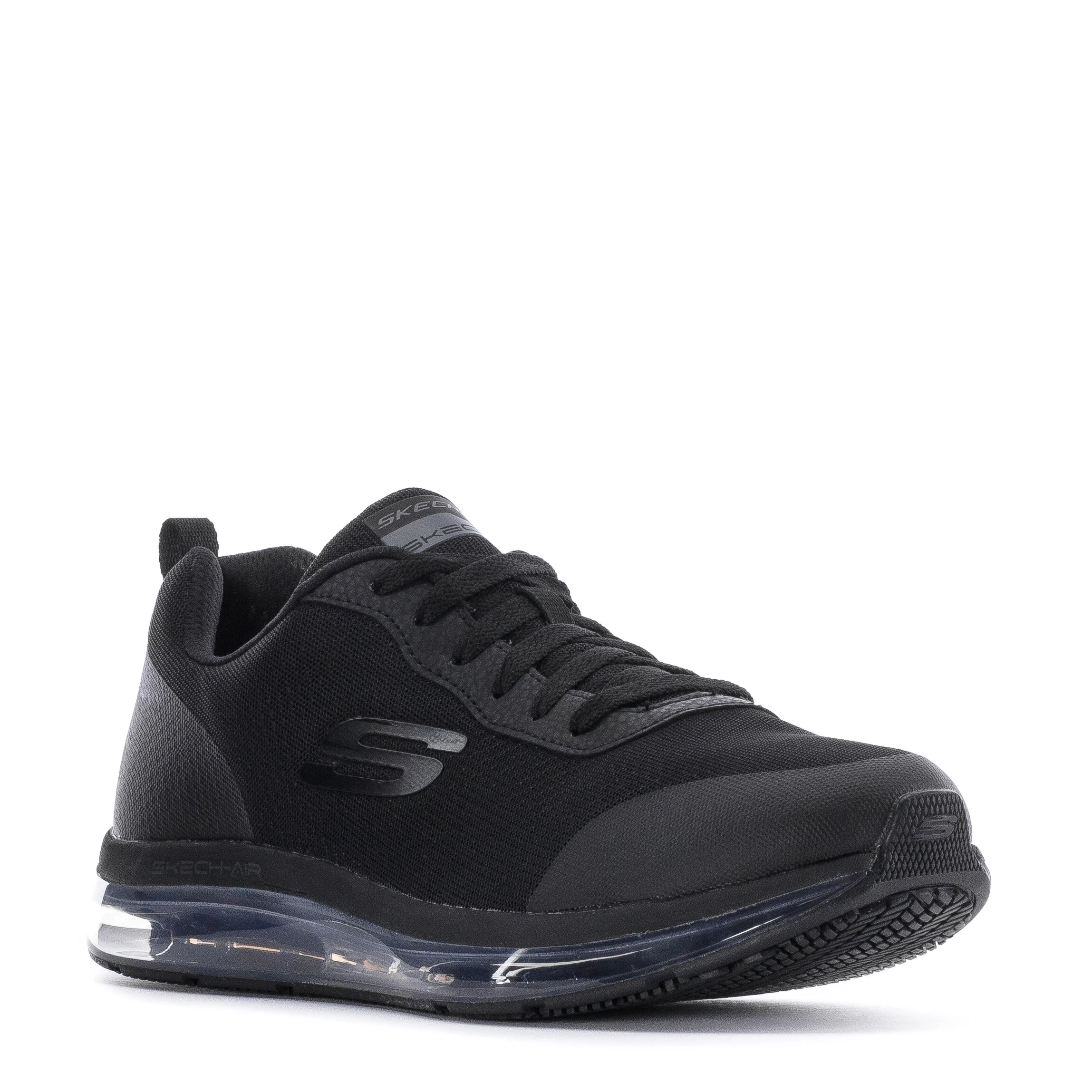 - Lace up sporty casual comfort slip resistant work sneaker design.