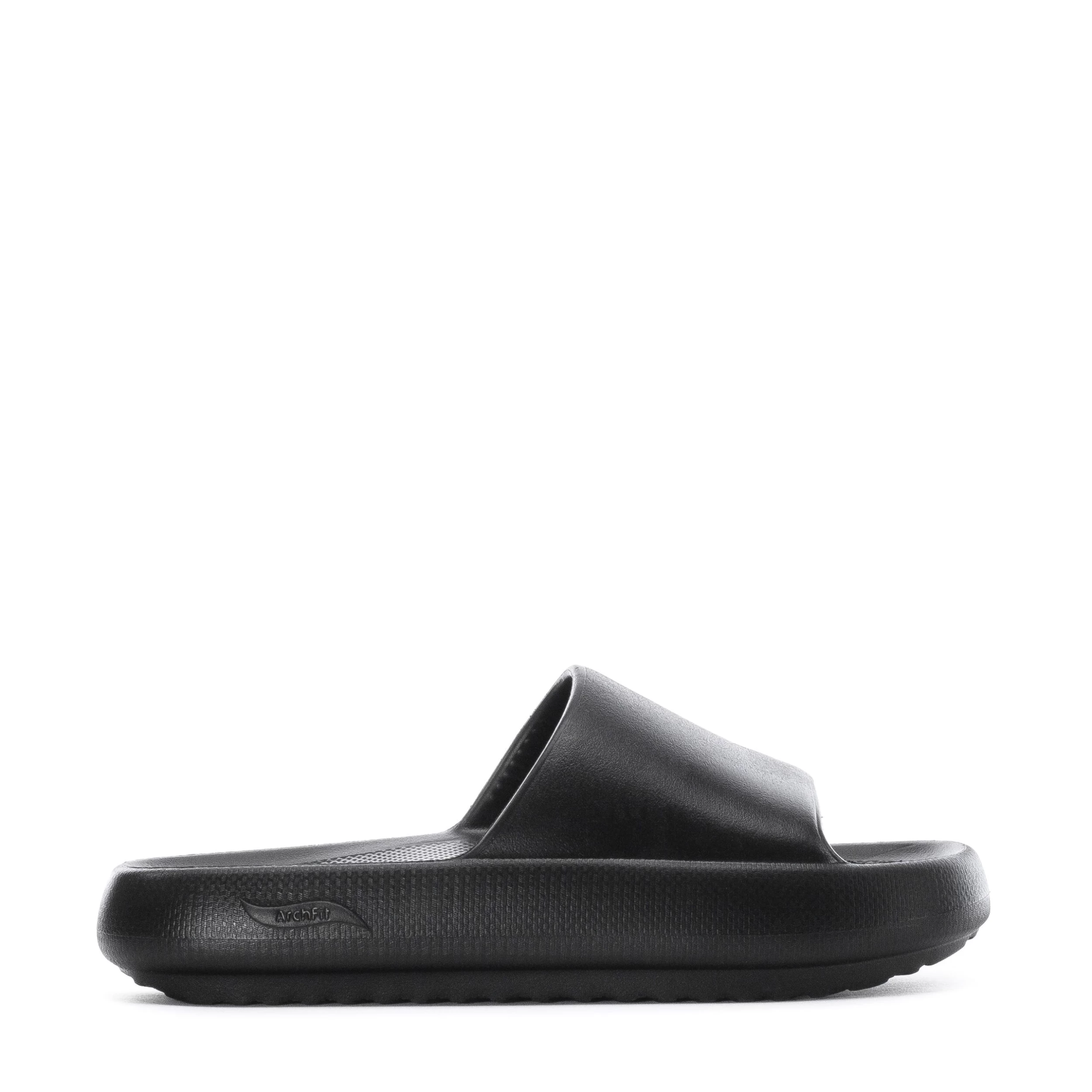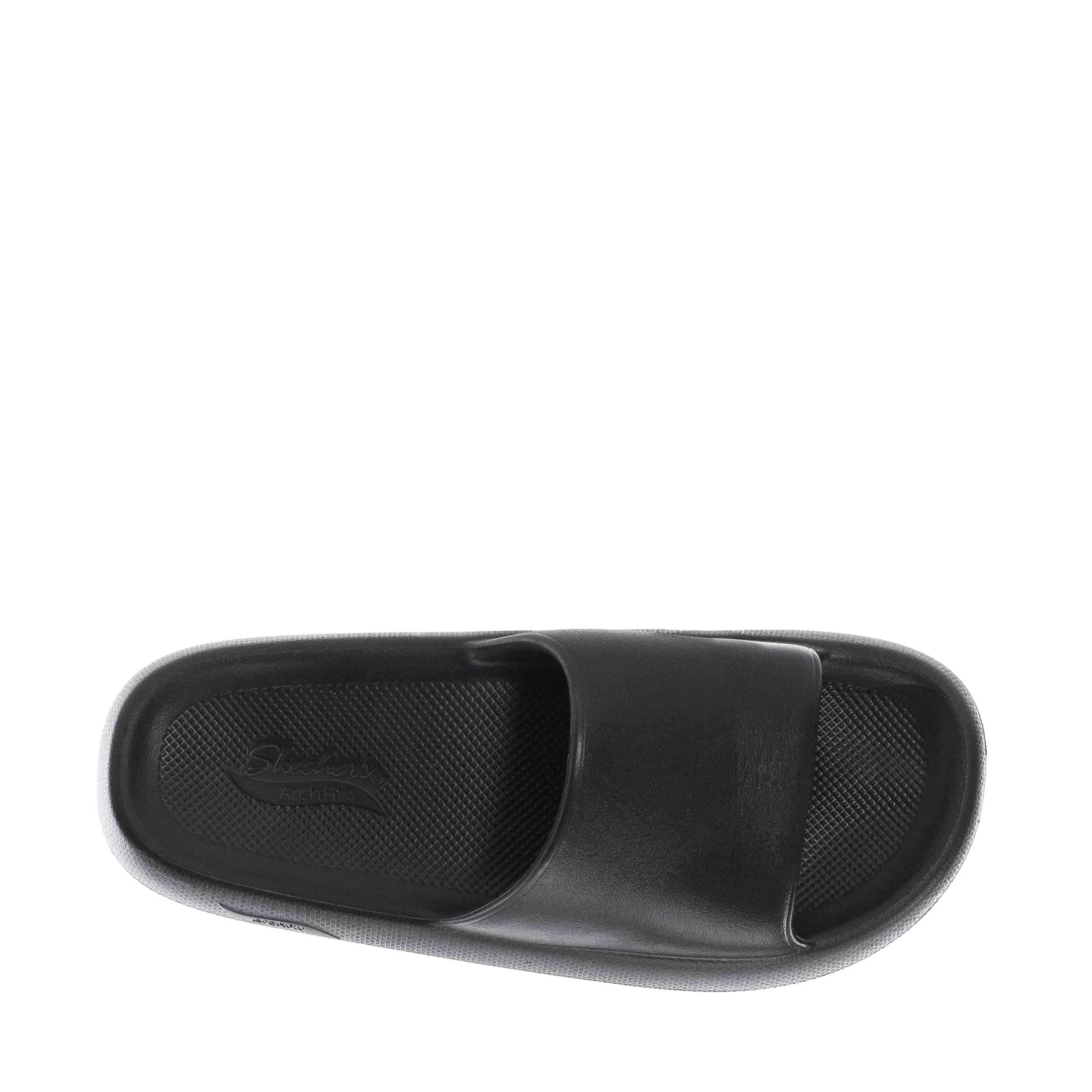 Slide into supportive comfort and on trend sculpted style wearing Skechers Foamies®: Arch Fit® Horizon. This monochromatic vegan slide features a Foamies® EVA single band upper and an Arch Fit® contoured footbed.