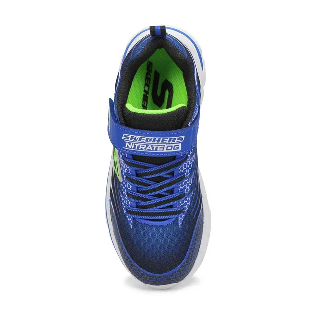 Sporty style and surefooted comfort combine in Skechers boys Nitrate slip on shoe in royal blue. This lightweight lace-up features an athletic mesh and synthetic upper with an ombre design, plus a cushioned comfort insole. This shoe will save you time and money. Fully machine washable for convenience, when your kids get themselves into a mess!