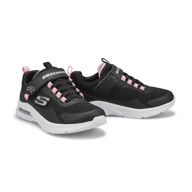 Play all-day in easy-wearing comfort with the Microspec Max black sneaker from Skechers. This lightweight sporty style features a synthetic and mesh upper with stretch laces, adjustable instep strap, and a translucent Skech-Air midsole. The Microspec Max is a slip-on style in a stretch laced panel with hook and loop closure.