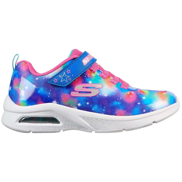 Cosmically cool style and comfort combine in Skechers Microspec Max – Spiral Galaxy. This slip-on features a breathable soft mesh and synthetic upper with allover galaxy print and visible air-cushioned midsole.