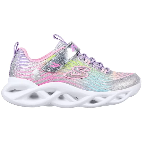 Dazzle your steps in style and comfort with Skechers S Lights: Twisty Brights – Mystical Bliss. This casual lightweight slip-on features a mesh and glitter synthetic upper with a light-up midsole.