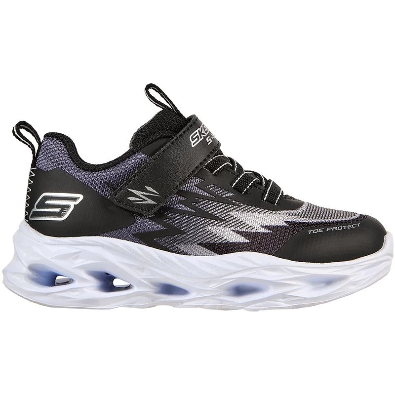 Light-up the fun in a quick flash with Skechers S-Lights®: Vortex-Flash – Zorent. This lightweight sporty slip-on features an athletic ombre mesh and synthetic upper with a hook and loop strap, and light-up midsole.