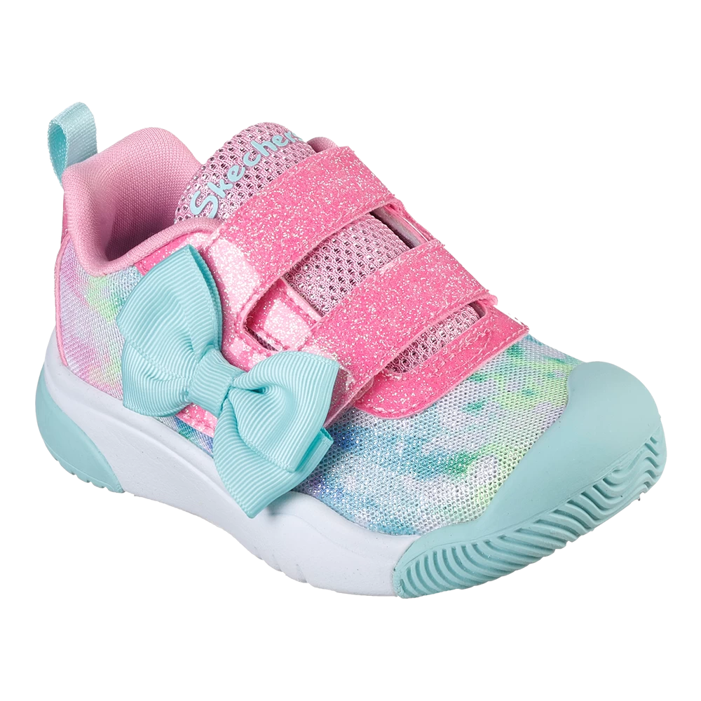 Keep her comfortable in Skechers Mighty Toes – Sparkle Brite shoe. This slip-on sneaker features a durable rubber outsole roomier toe box and is machine washable.