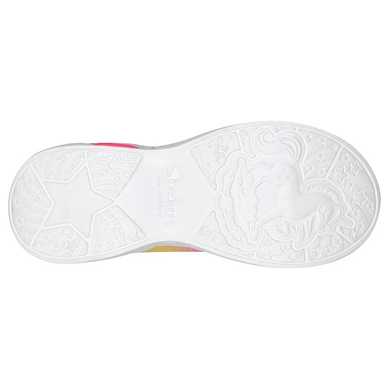 Brighten up your day with a little unicorn magic wearing the Skechers S-Lights: Unicorn Dreams shoe. This light-up sneaker features an ombre synthetic upper with a glitter finish and a cushioned comfort insole