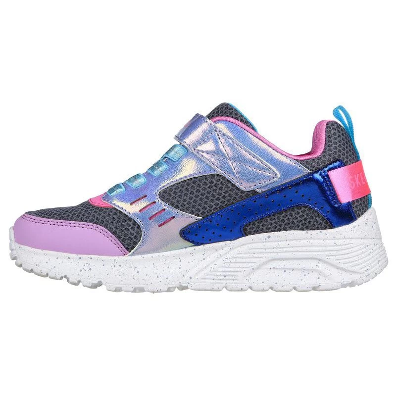 Trendy style and comfort combine in Skechers Streetâ„¢ Uno Lite – Gen Chill. This slip-on fashion style features a synthetic and mesh upper with an iridescent trim, Skechers Air-Cooled Memory Foam® insole and a platform wedge cushioned midsole.