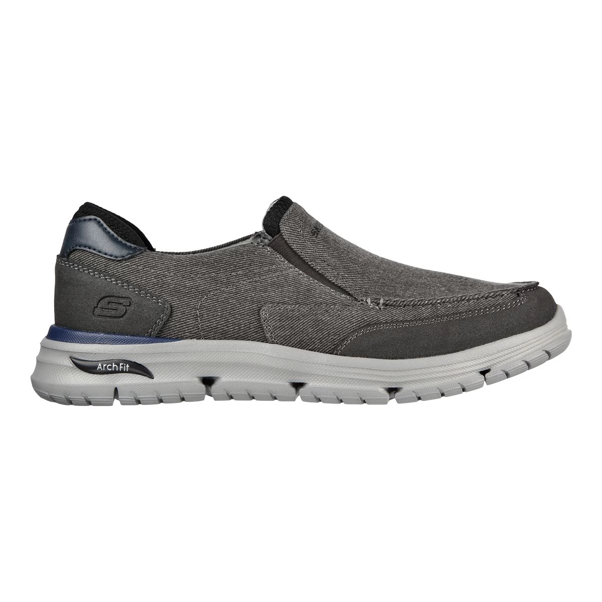 A classic casual look gets enhanced supported comfort in the Skechers Relaxed Fit®: Arch Fit® Vortell – Rothler. This pull-on casual moc toe loafer features a soft woven canvas fabric and synthetic upper plus a Skechers Air-Cooled® insole with a supportive Arch Fit® design.