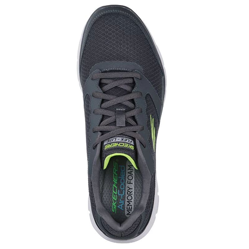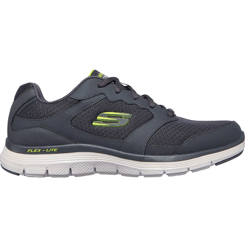 Keep your training options very flexible and comfortable with the SKECHERS Flex Advantage 4.0 shoe. Smooth action leather and soft woven mesh fabric upper in a lace up front athletic training sneaker with stitching and overlay accents. Air Cooled Memory Foam insole.