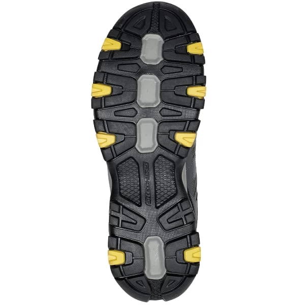 Explore the great outdoors in durable comfort with Skechers Terrabite. This lace-up water repellent trail design features a Scotchgard treated leather, synthetic and mesh upper with a Skechers Air-Cooled Memory Foam insole.