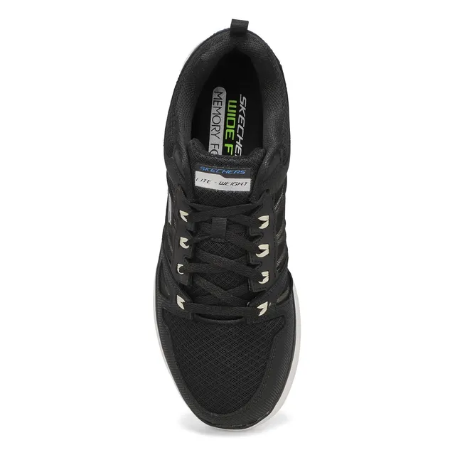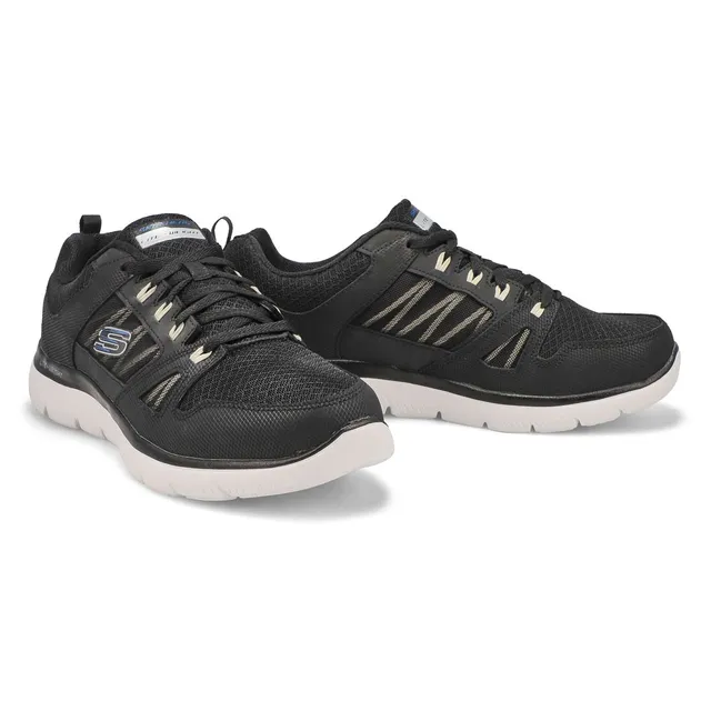 Discover the ideal middle ground between lightweight comfort and sporty reliable style with the Summits New World black/white sneakers in wide width from Skechers. Featuring a smooth action leather combines with textured mono mesh fabric in a lace up front athletic training sneaker with breathable panel detail. Memory Foam insole for added comfort.