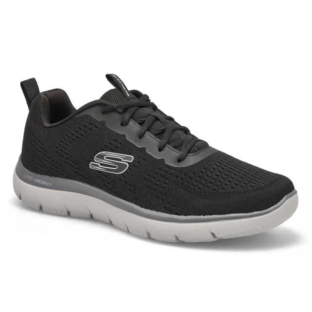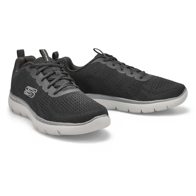 Happier feet are just a step away with the Summits Torre black/ charcoal sneaker from Skechers. This lightweight active design features an engineered mesh upper with lace-up front and a Skechers Memory Foam cushioned comfort insole. The Summits Torre sneaker is designed with a flexible traction outsole. Skechers logo detail.