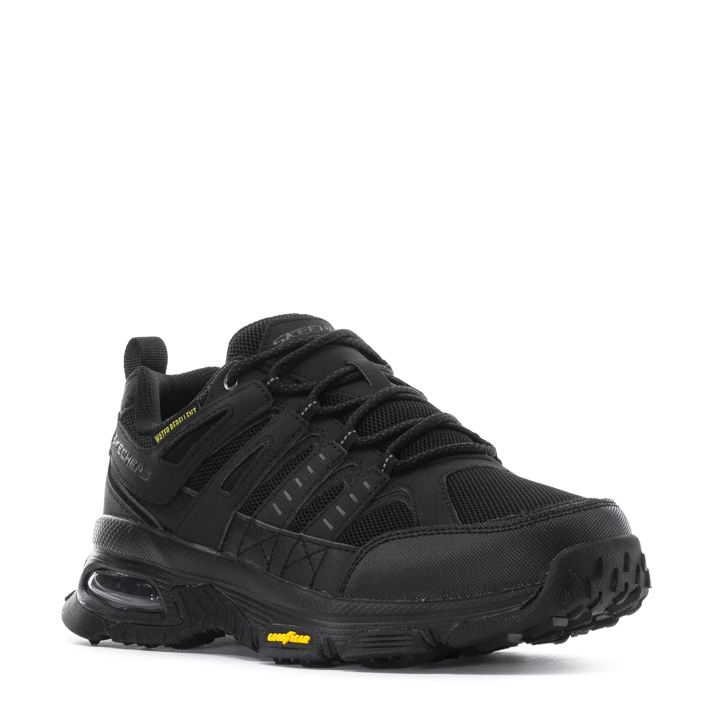 Walk and hike in surefooted comfort and athletic style with the Skechers Skech-Air Envoy shoe. This lace-up athletic trail hiking sneaker features a smooth leather, synthetic, mesh upper with an Air-Cooled Memory Foam insole and Goodyear Rubber outsole.