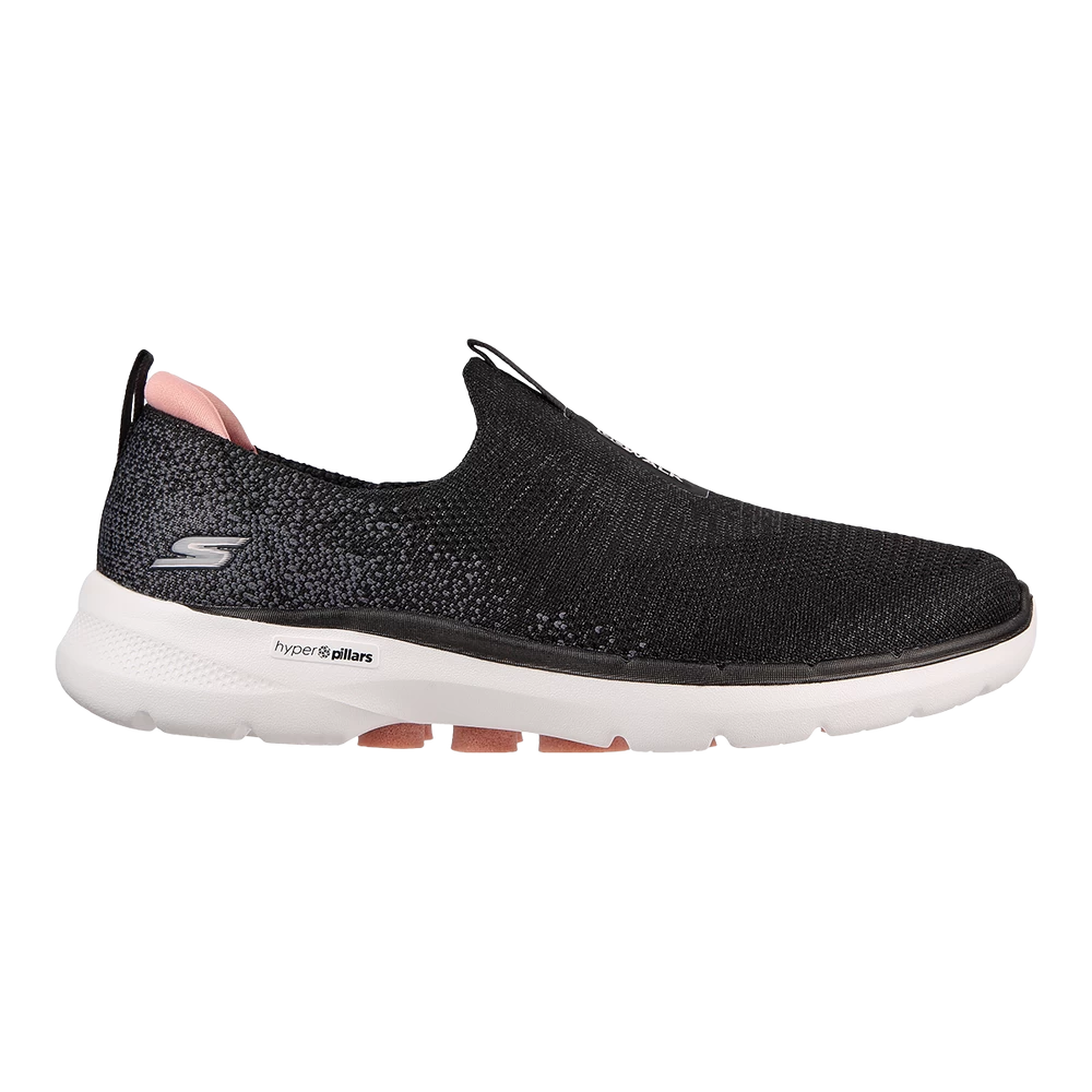 Take a shine to elevated comfort with the Skechers GOwalk® 6 shoe. This slip-on sneaker features an athletic engineered flat knit upper with an Air-Cooled Goga Mat™ insole lightweight Ultra GO® cushioning midsole and high-rebound Hyper Pillar Technology™ for added support.