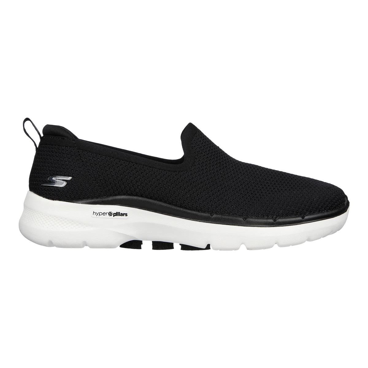 Walk in easy-wearing comfort with the Skechers GO Walk 6™ – Clear Virtue shoe. This pull-on sneaker features an athletic engineered knit upper with a hot melt binding on collar Air-Cooled Goga Mat™ insole lightweight Ultra GO cushioning midsole and high-rebound Hyper Pillar Technology™ for added support.
