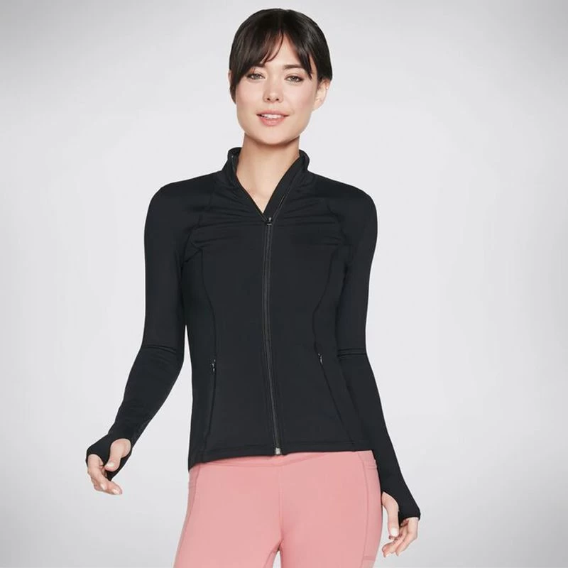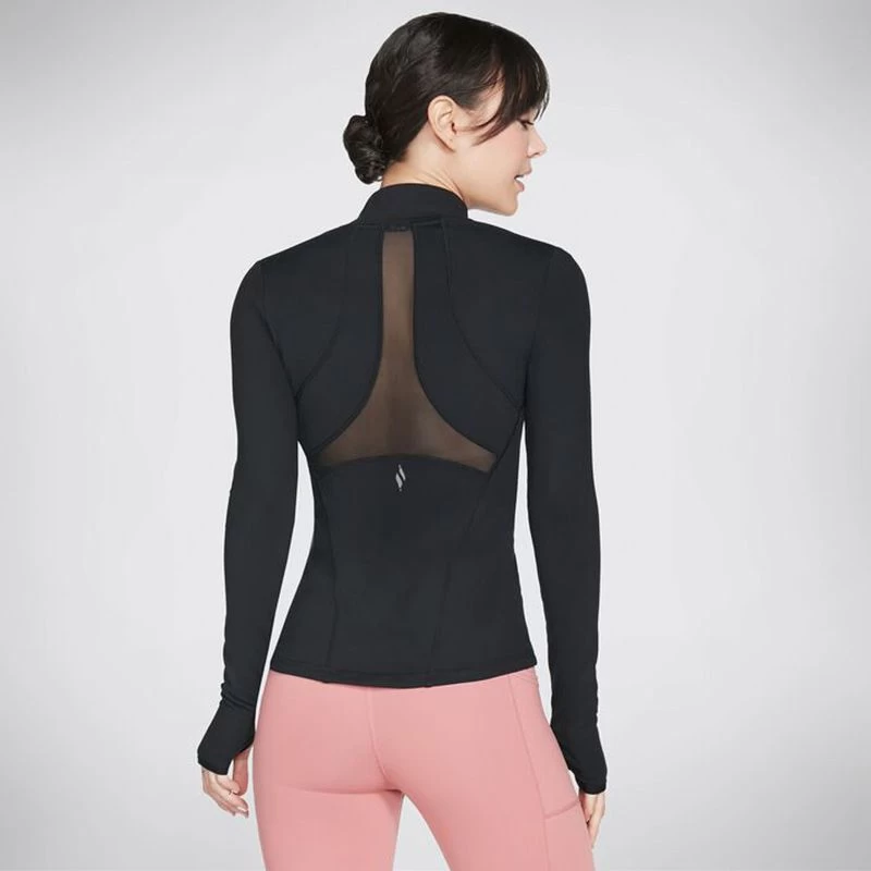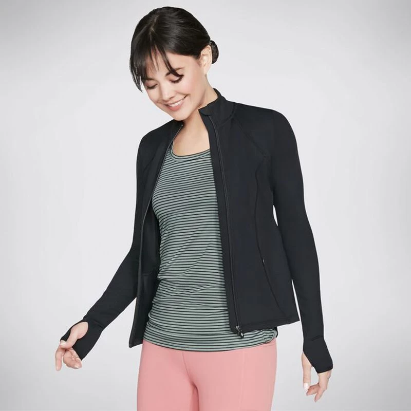 Walk further in flexible comfort and style with the Skechers GO WALK Wear™ Mesh Jacket. This athletic mock neck zip-front jacket features a GOFLEX® moisture-wicking nylon and spandex blend fabric, long sleeves with thumbhole detail, back power mesh trim and on-seam concealed zip pockets.