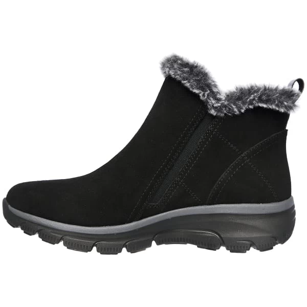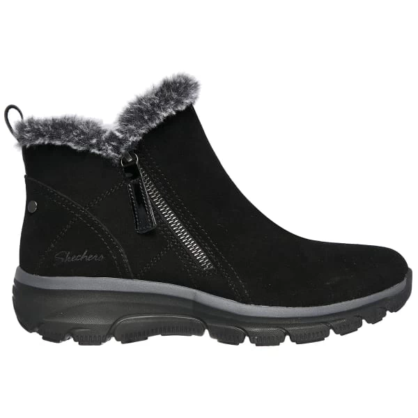 Stylish looks and cozy warm comfort combine in Skechers Relaxed Fit: Easy Going – High Zip. This ankle zip boot features a suede upper with faux-fur trim and a cushioned Skechers Air-Cooled Memory Foam insole.