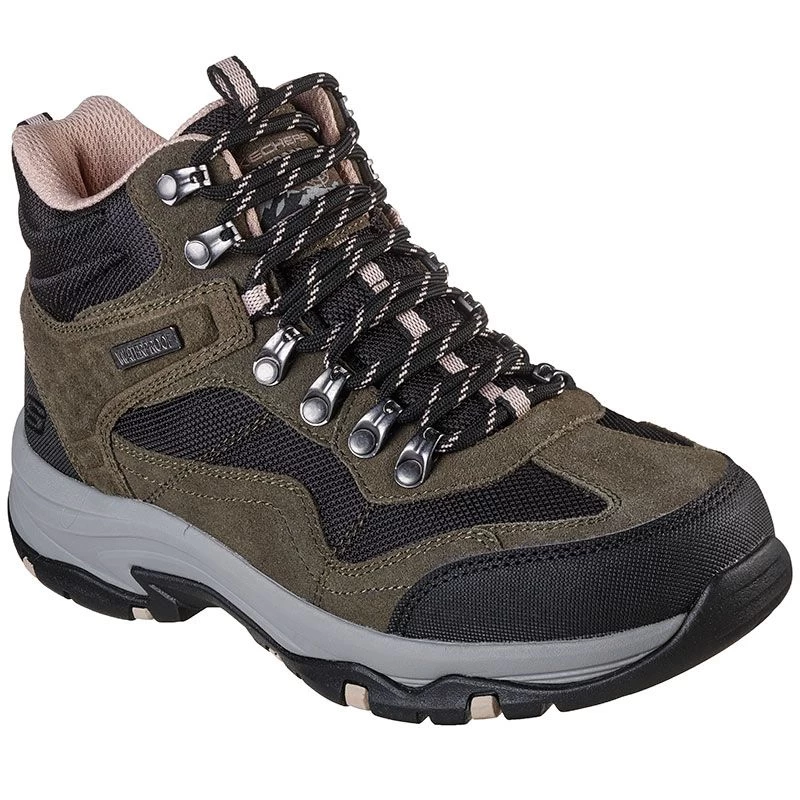Go offroading in outdoor style and long-lasting comfort with the SKECHERS Relaxed Fit; Trego – Base Camp boot. Soft sport suede, synthetic and mesh fabric upper in a lace up waterproof hiking ankle boot with stitching and overlay accents. Air Cooled Memory Foam insole.