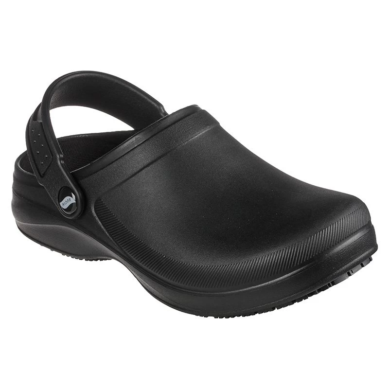 Slip on supportive comfort before starting on your prep work with the Skechers Work Arch Fit: Riverbound – Pasay SR clog. This slip-resistant clog features a sculpted flexible EVA upper with an Arch FitĀ® contoured footbed and a convertible heel sling strap.
