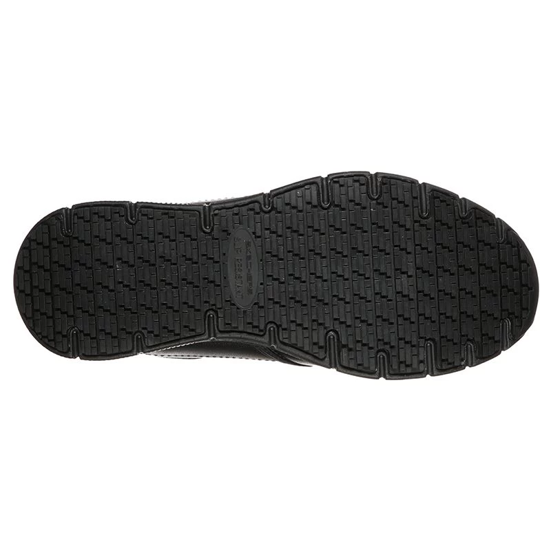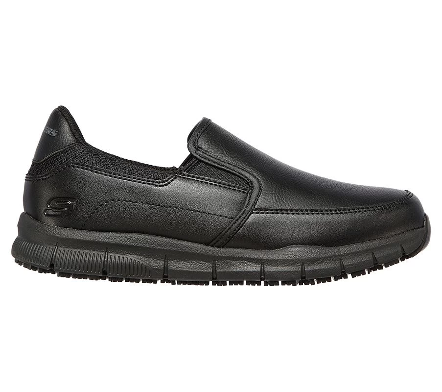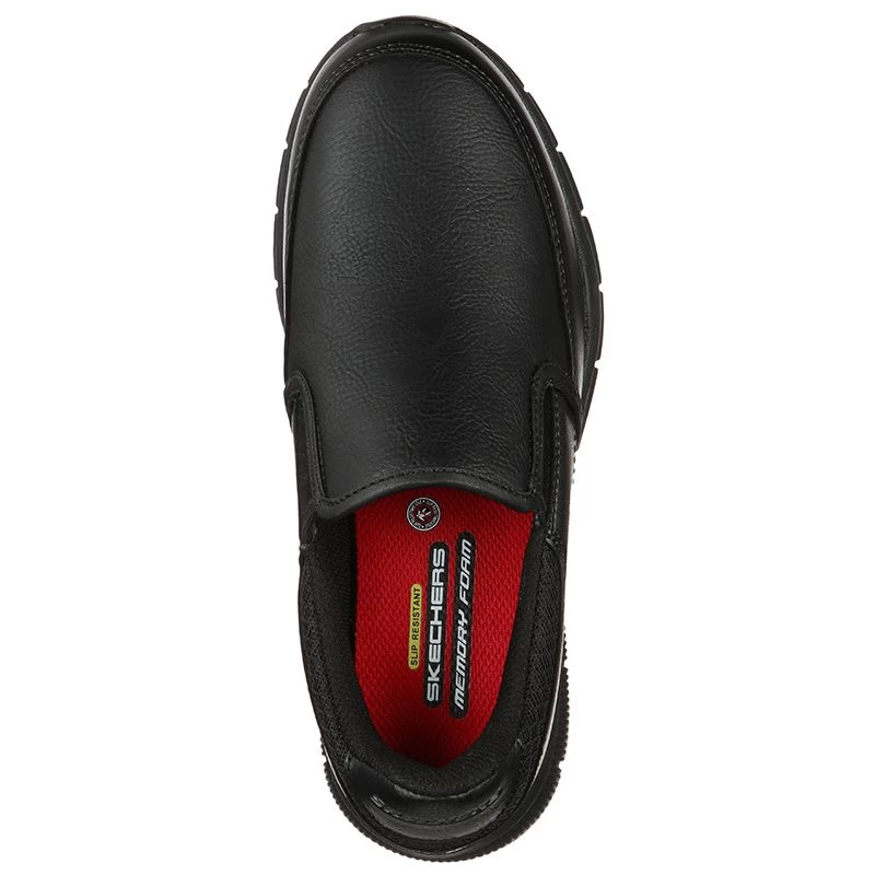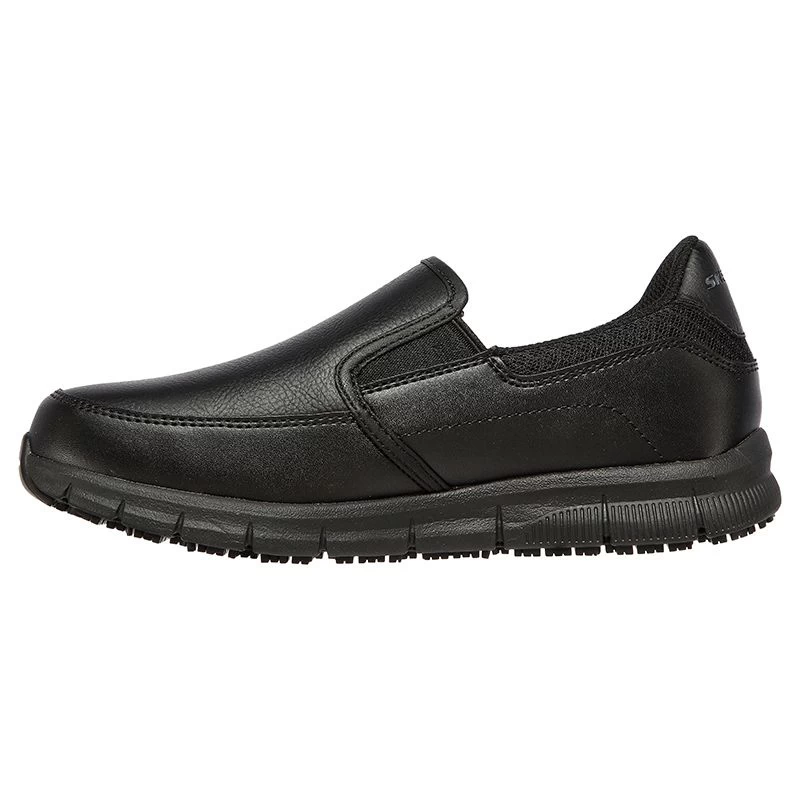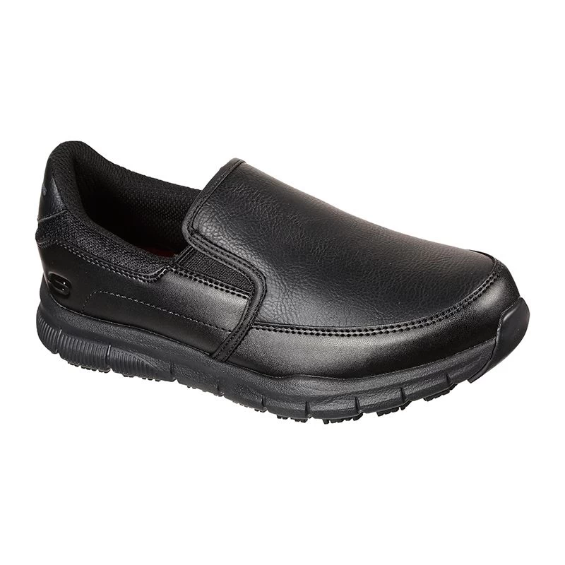 Have a comfortable and safe day every day with the SKECHERS Work Relaxed Fit®: Nampa – Annod SR shoe. Smooth leather-textured synthetic upper in a slip on sporty casual comfort work slip resistant sneaker with stitching accents and Memory Foam insole.