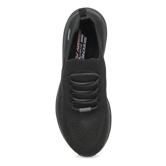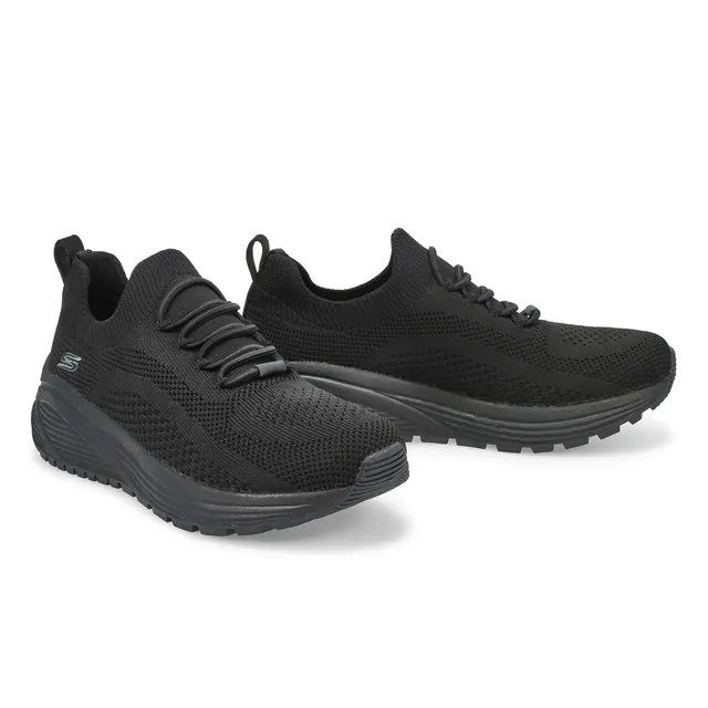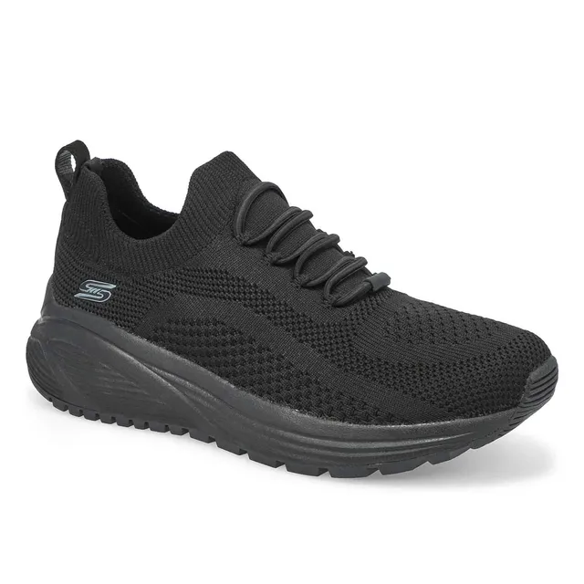 Pledge to show off more style and comfort with the Bobs Sport Sparrow 2.0 Black shoe from Skechers. Soft woven engineered knit mesh fabric upper in a slip on stretch laced sporty casual sneaker with fashionable monochromatic design and Memory Foam insole. Matching color stretch bungee front panel for easy slip on fit. Socklike fit at collar with soft textured knit.