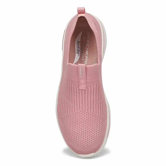 Enjoy your walks in long-lasting supportive comfort with GoWalk Arch Fit Iconic pink sneaker from Skechers. This slip-on features a Stretch-Fit engineered knit upper with a removable Arch Fit insole, lightweight ULTRA GO cushioned midsole and high-rebound Comfort Pillar Technology for added support. Patented Skechers Arch Fit insole system with podiatrist-certified arch support.