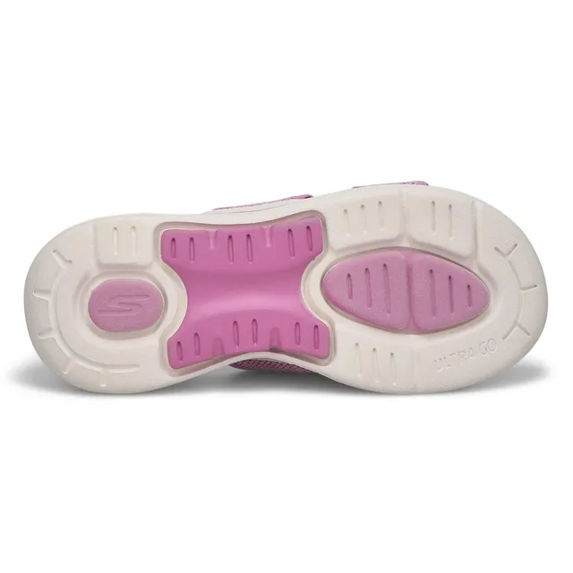 A great style gets extra supported comfort in the Go Walk Arch Fit lavender slide sandals from Skechers. Features lightweight, responsive Ultra Go cushioning and supportive contoured Arch Fit footbed design. The Go Walk Arch Fit sandal is designed with a soft knit fabric upper in a sporty casual slip on sandal design.