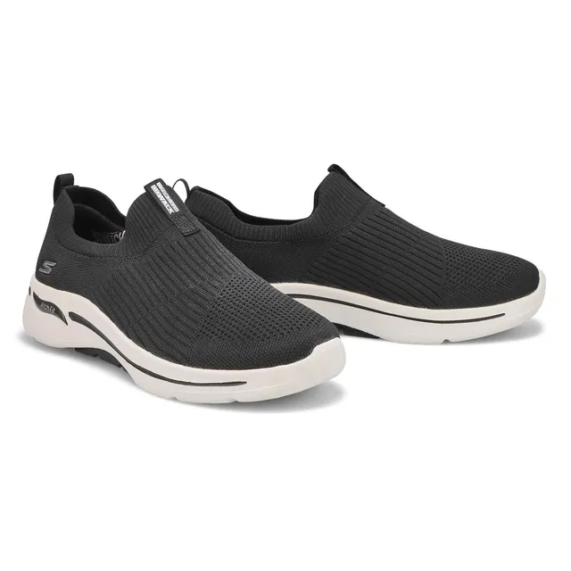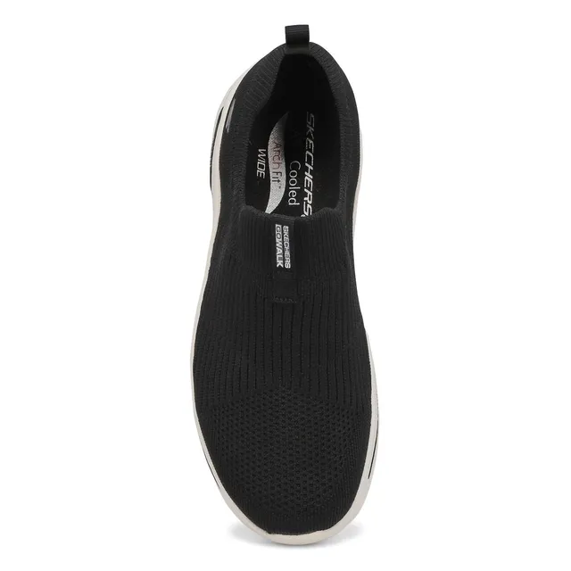 Enjoy your walks in long-lasting supportive comfort with GoWalk Arch Fit Iconic black sneaker from Skechers.. This slip-on features a Stretch-Fit engineered knit upper with a removable Arch Fit insole, lightweight ULTRA GO cushioned midsole and high-rebound Comfort Pillar Technology for added support. Patented Skechers Arch Fit insole system with podiatrist-certified arch support. Wide width.