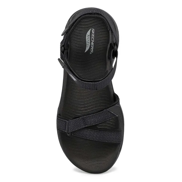 Keep your feet happy all season with GoWalk Arch Fit Sport Sandal from Skechers. This ankle strap slide comfort sandal features a woven mesh fabric upper with a comfort Arch Fit footbed and lightweight ULTRA GO cushioning. Patented Skechers Arch Fit contoured footbed. The GoWalk Sport sandal is designed with a durable dual-density traction outsole for stability.