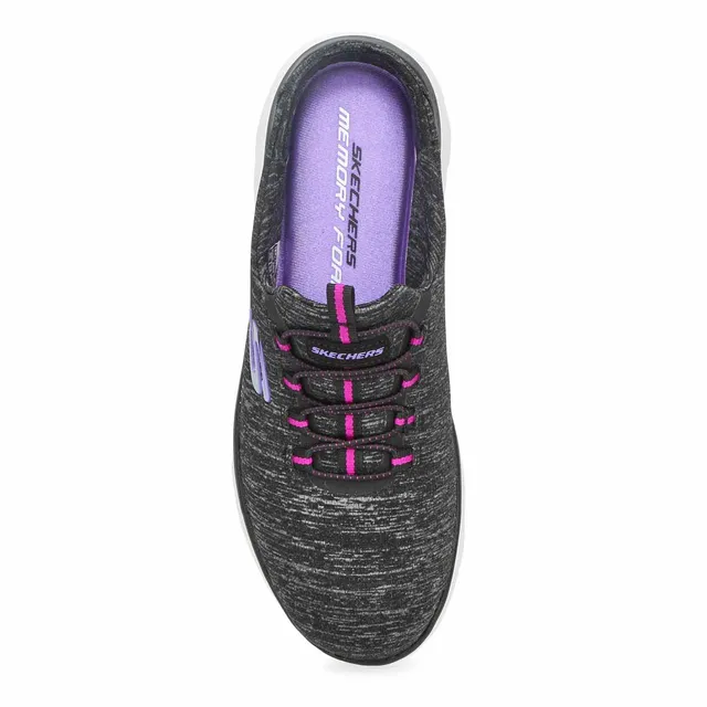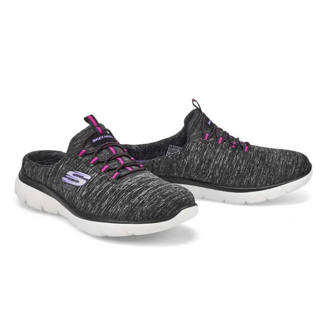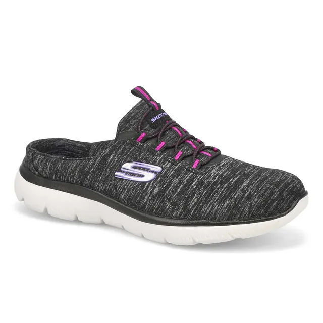 Enjoy the fresh air in supportive feet-loving comfort with the Skechers Summits Open Back black sneaker. This open-back sneaker features a heathered jersey mesh upper with a bungee-laced front and Memory Foam cushioned insole. The Summits open back sneaker is designed with a shock-absorbing midsole and flexible rubber traction outsole.