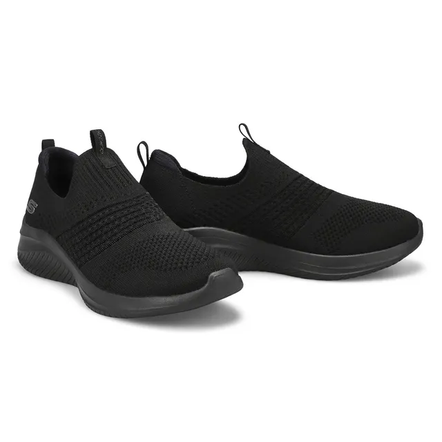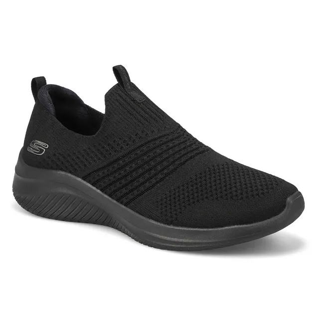Step in flexible comfort and athletic style with Skechers Ultra Flex 3.0 black Classy Charm sneaker. This Stretch Fit slip-on features an engineered knit upper with a Skechers Air-Cooled Memory Foam insole. Lightweight shock-absorbing midsole. The Ultra Flex 3.0 Classy Charm sneaker is designed with a super flexible rubber traction outsole. Wide Width