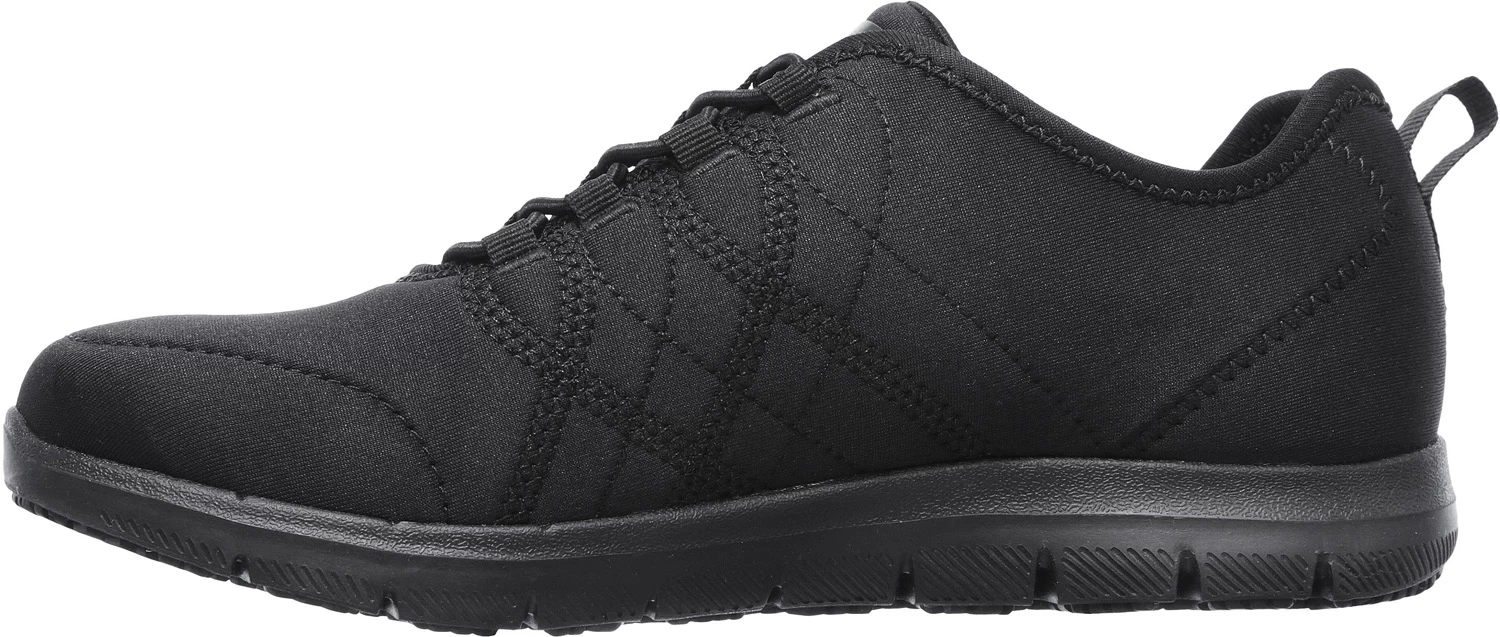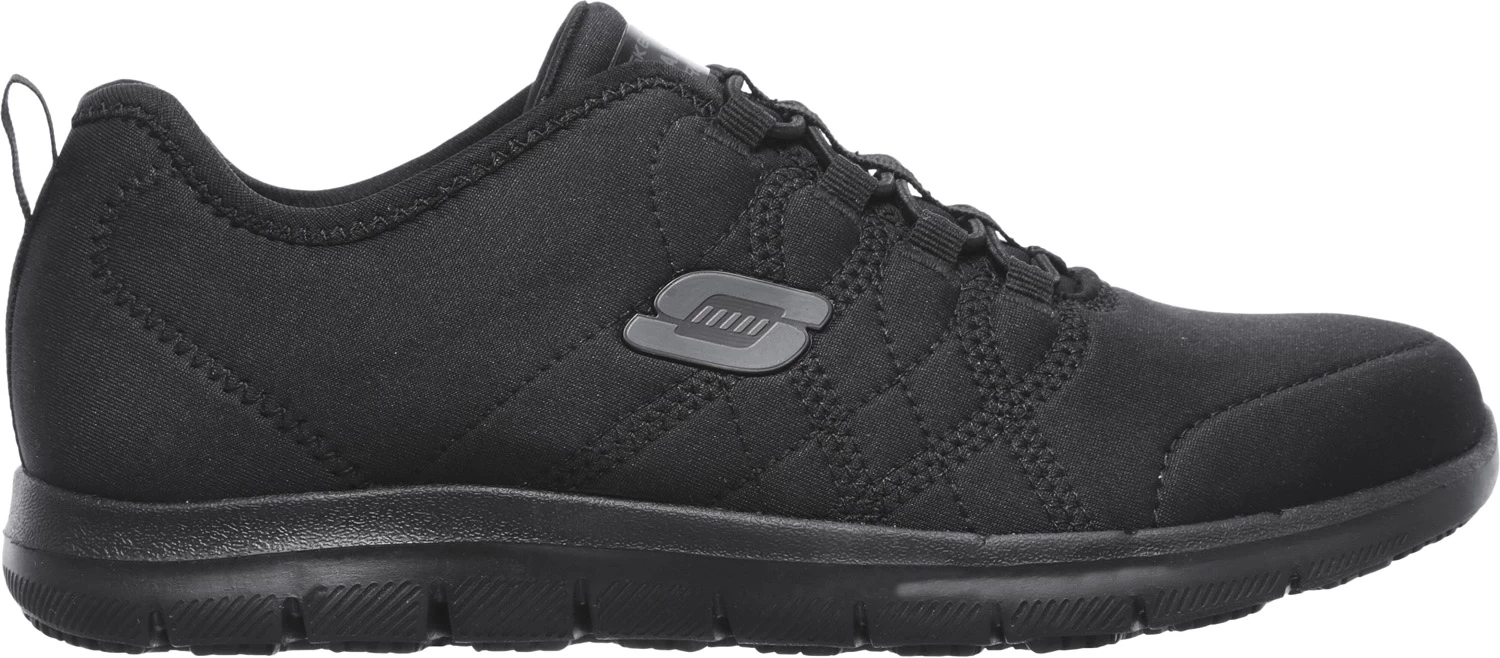 SKECHERS Work SK77211BLK Ghenter-Srelt, Women’s, Black, Soft Toe, Slip Resistant, Work Shoe