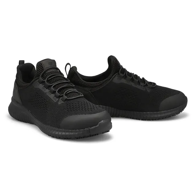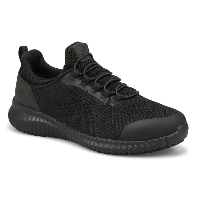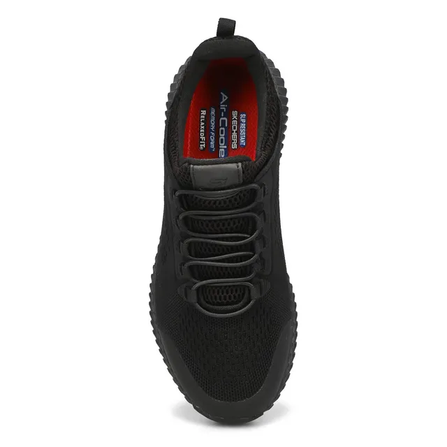 Refined sporty style and all-day protected comfort combine in the Skechers Work Relaxed Fit: Cessnock – Carrboro SR shoe. This slip-resistant sneaker features a smooth mesh knit upper with a slip-on bungee-laced front and cushioned Memory Foam insole. Electrical Hazard (EH) safe design tested ASTM-F2892. Relaxed Fit design for a roomy comfortable fit.