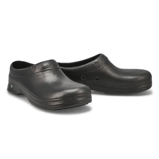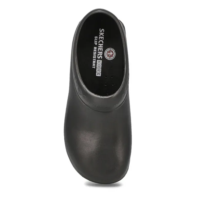 Scrub wear! The Skechers Work Oswald Clara clog. Soft, closed-cell foam upper in a slip on casual work clog style, with a roomy toe, padded collar with embossed detail.